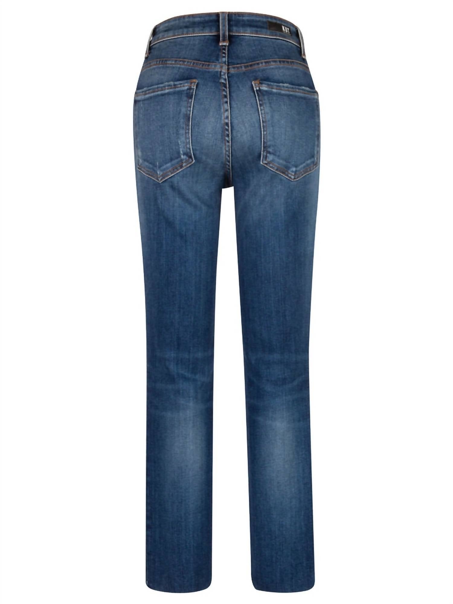 Timeless blend of comfort and style. Crafted from a cozy mix of 94% Cotton. 5% Polyester and 1% Spandex. Flattering fit. High-rise waist. Button fly closure. Subtle distressing and a raw hem. 28-inch inseam. 13-inch leg opening. Comfortable 10.5-inch rise.