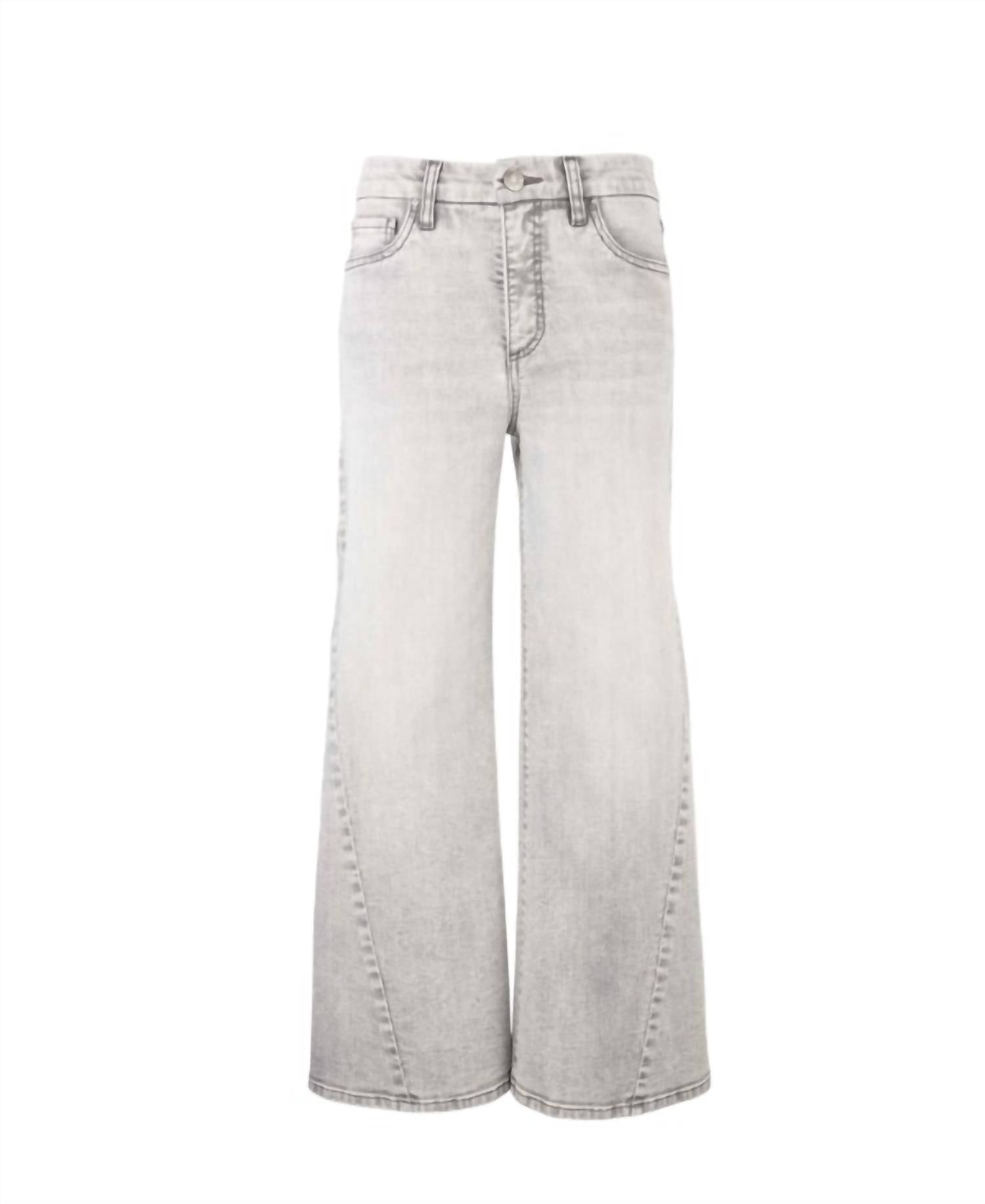 Introducing the Women's Fab Ab Wide Leg Jeans by KUT FROM THE KLOTH, designed to elevate your style with a contemporary edge. Crafted from plush polyester fabric in the chic Stride color, these jeans feature a comfortable mid-rise stance and effortless button closure. Perfectly tailored with a leg opening of 23 inches and an inseam of 27 1/4 inches, these solid wide-leg jeans are equipped with Fab Ab front pockets for a flattering fit. Embrace the seamless blend of style and comfort in this wardrobe essential.