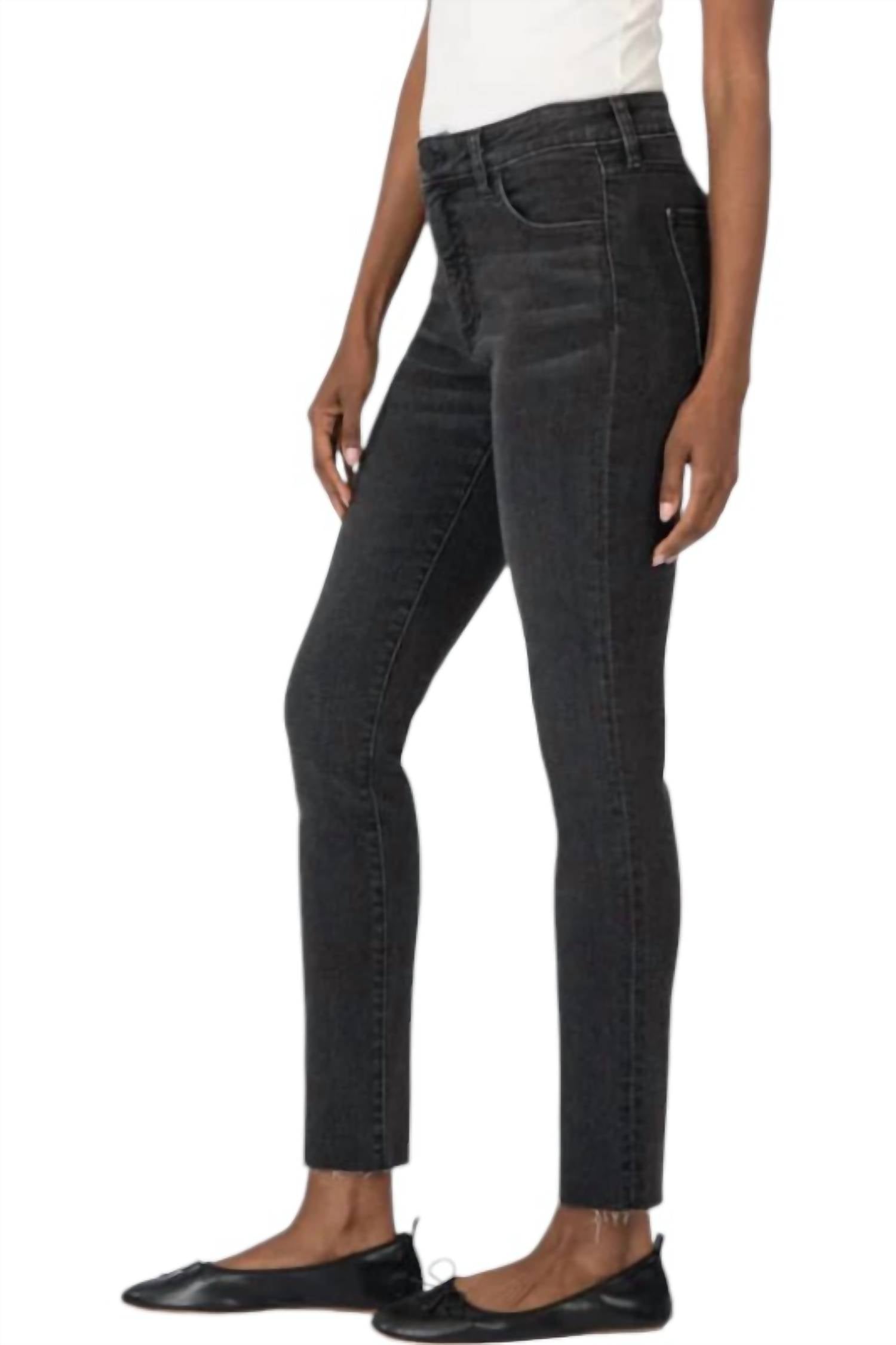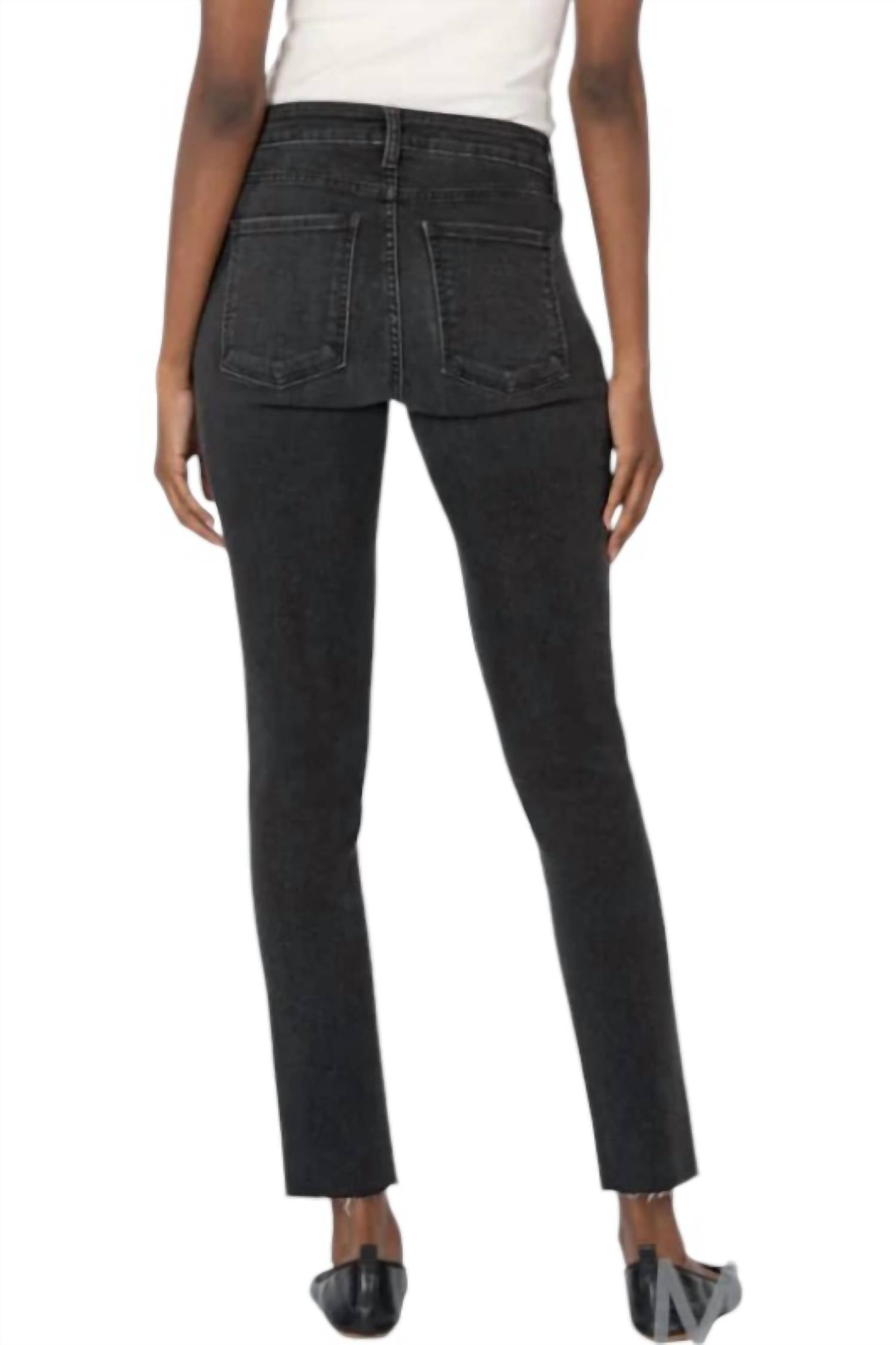 These must-have jeans are fit to perfection.Effortlessly combine vintage charm with modern flair. Expertly crafted in a faded black wash. Offer a timeless worn-in look. Perfect for both casual outings and chic yet laid-back ensembles. Raw hem detail. Straight-leg jeans a standout piece in any wardrobe. High-rise waist and a classic fit. Flatter your figure while providing comfortable wear. Made from a premium blend of cotton, lyocell, polyester, and elastane. Ensure durability and a hint of stretch. 27-inch inseam and a 10.5-inch rise. Create a streamlined silhouette that elongates the legs. Perfect blend of heritage-inspired design and contemporary comfort.