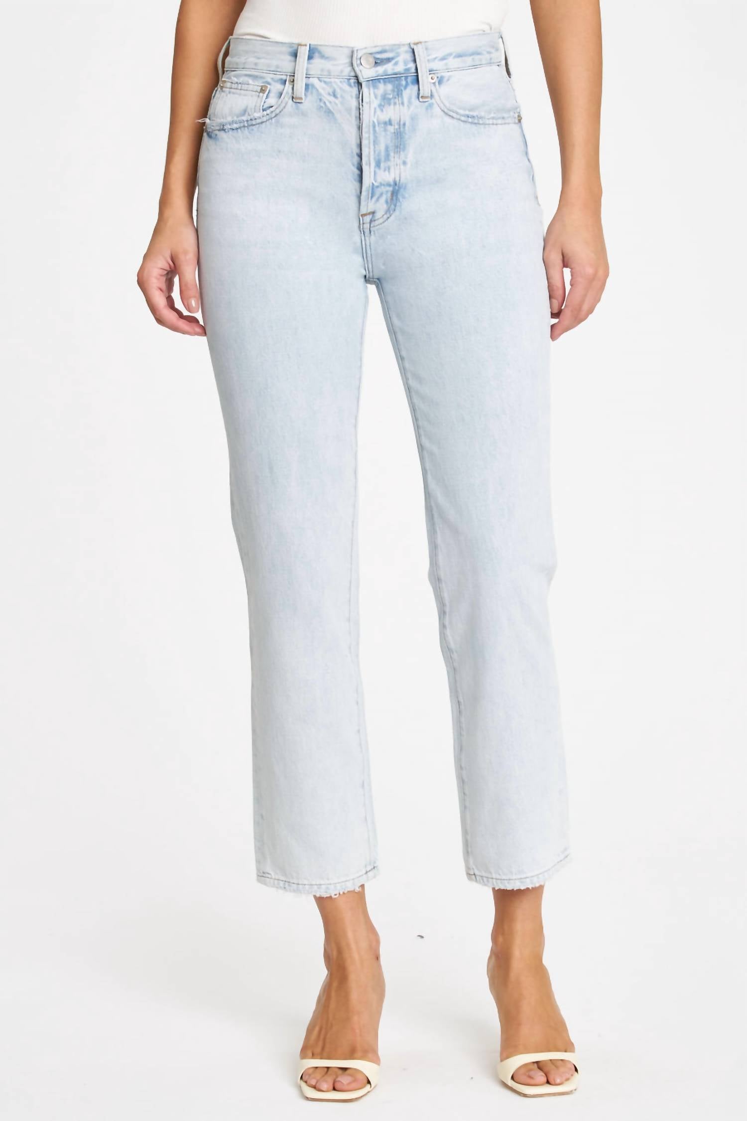 Tuck your favorite tee into these high-waist jeans for a more casual-cool feel. Presenting the Charlie High Rise Straight Cut Jeans by PISTOLA, a must-have for effortless fashion. Designed with a high-rise fit and relaxed straight leg, these jeans hug your waist and hips for a flattering silhouette. Made from 100% comfortable cotton, they feature a light wash in the Rennie color, perfect for a minimalist, vacation-ready style. Convenient with pockets and secured with a button closure, these jeans are easy to care for with machine wash and tumble dry instructions. Rise: 11", Inseam: 27".