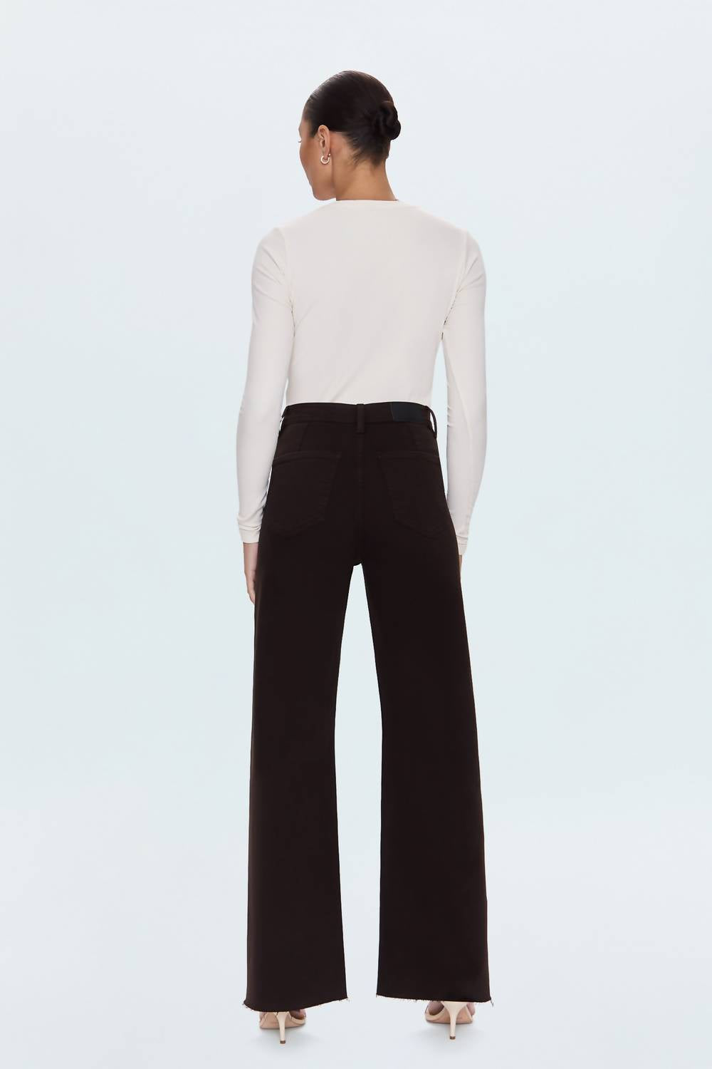 A flattering silhouette that's suprisingly versatile. Introducing the Penny High-rise Wide-leg Jean by PISTOLA in a captivating Mocha shade, your perfect everyday essential. These jeans boast a flattering high-rise waist and a chic wide-leg silhouette along with a cropped, ankle-length hemline. Crafted from 99% Cotton and 1% Elastane premium comfort stretch denim, they are designed with a double-stitched waistline and modern scissor-cut hems. Closure: Zip closure. Care: Machine wash and tumble dry. Model is 5'9" wearing size 26, featuring a 12” rise, 21” leg opening, and 27" inseam.