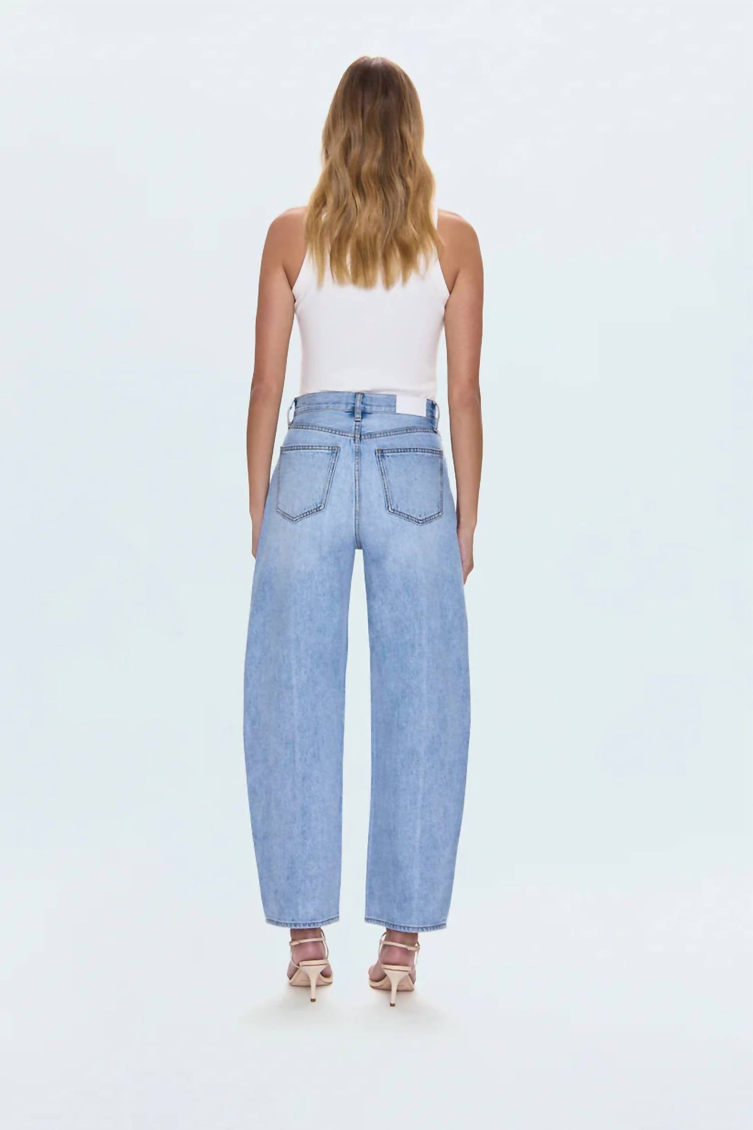 Fit to perfection, we love these high-waist jeans and you will too. Introducing the Wes High-rise Jean by PISTOLA, your new essential for a modern denim look in Gaze. These jeans, crafted from premium 100% cotton, boast a flattering high-rise waist and a full-length 30" inseam. Designed with a stylish barrel leg silhouette, they feature a relaxed fit and a leg opening of 16 1/2 inches, creating a sophisticated yet versatile addition to your wardrobe. Closure: Zip closure. Origin: Imported. Care: Machine wash and tumble dry.
