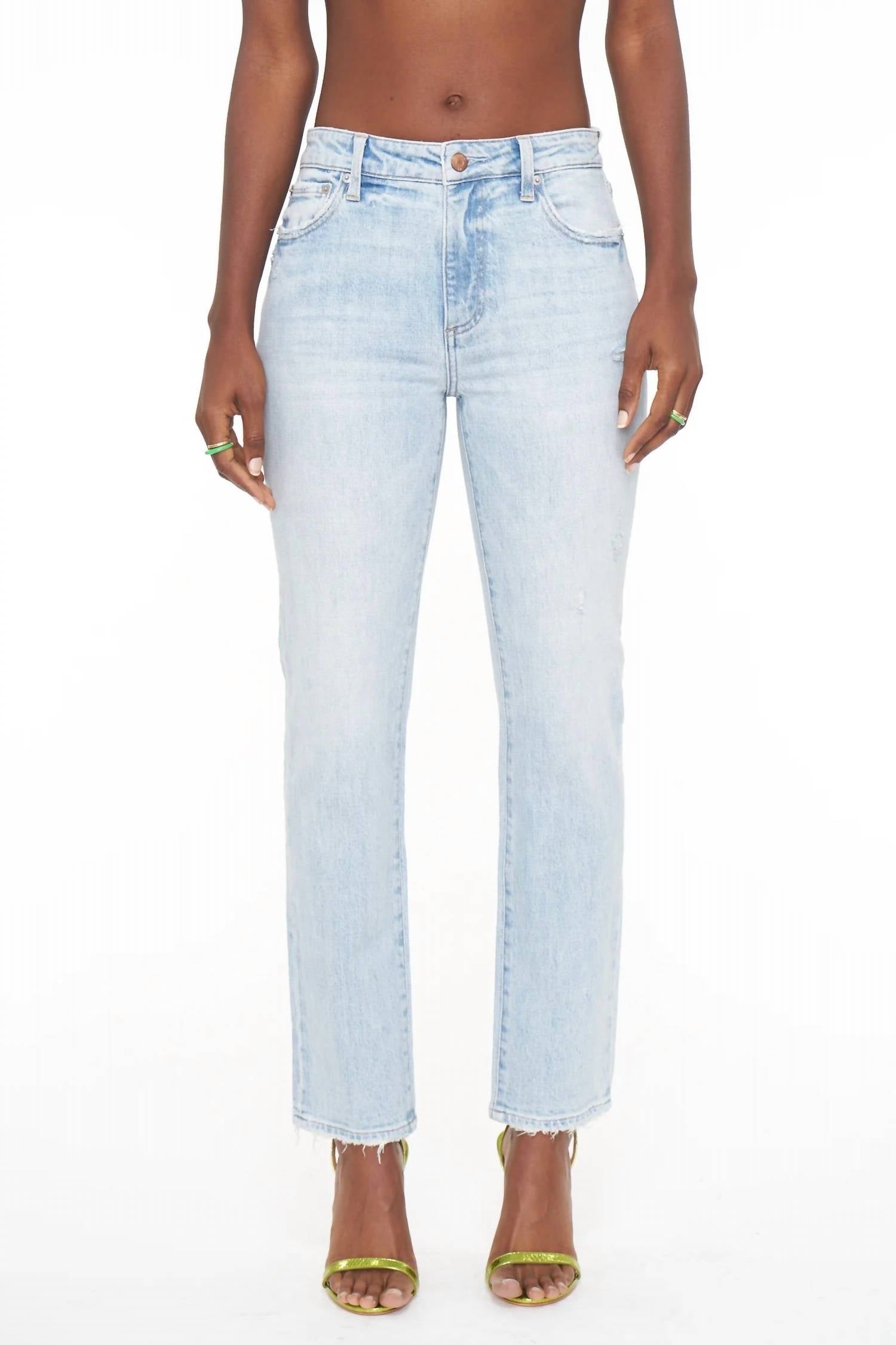 Fit to perfection, we love these high-waist jeans and you will too. Embrace the relaxed Parisian aesthetic with the Women's Monroe High Rise Cigarette Jean by PISTOLA, a versatile addition to your wardrobe. Crafted from a cotton blend comprising 94% cotton, 5% polyester, and 1% elastane, these jeans feature a straight leg and relaxed fit. Designed with functionality in mind, they include pockets and a button closure. The high rise and light wash with whisker details provide a flattering silhouette. Care is straightforward with machine wash and tumble dry, perfect for effortless style in spring.