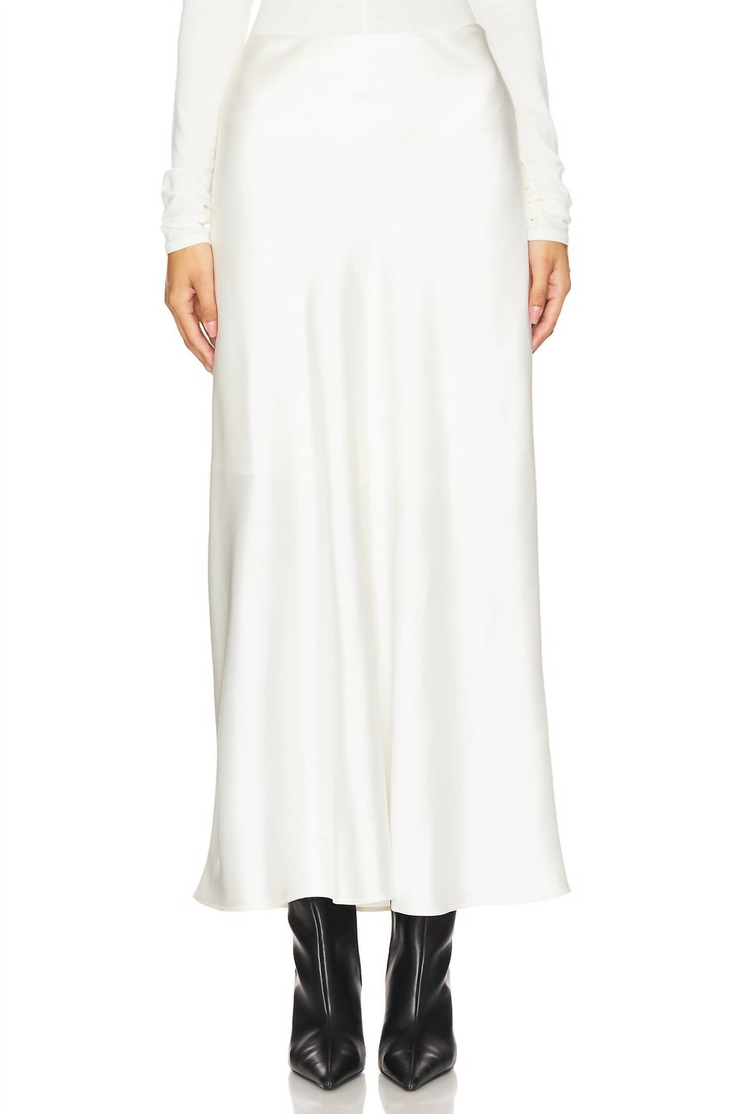 Flowy, comortable and stylish. This maxi skirt is a fan favorite. Embrace elegance with the Jeannie Maxi Skirt by STEVE MADDEN, crafted in a stunning ivory hue to elevate your style. This women's skirt boasts a luxurious medium-weight satin fabric, crafted entirely from polyester, with a length of approximately 98 cm. It features a concealed side zip closure for a smooth silhouette and is partially lined for added comfort. Made in China, this maxi skirt can be easily maintained with a machine wash, perfect for making a sophisticated statement at dinner parties or Easter celebrations.