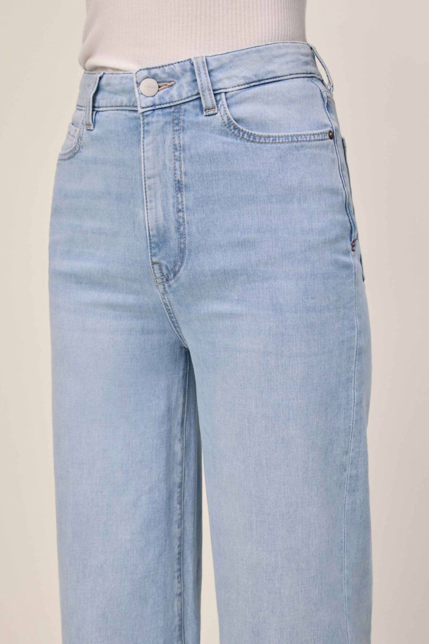 These women's jeans feature a relaxed fit with a wide leg style and ultra-high rise, complete with a 33" inseam and 12.5" front rise. Crafted from a comfortable stretch cotton blend (99% Cotton, 1% Elastane), they offer the comfort of loungewear with the look of authentic denim.