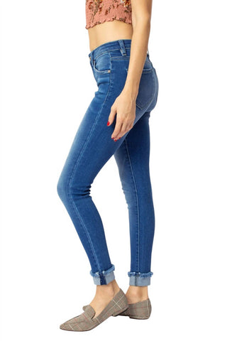 Kancan - Mid Rise Cuffed Ankle Skinny Jeans