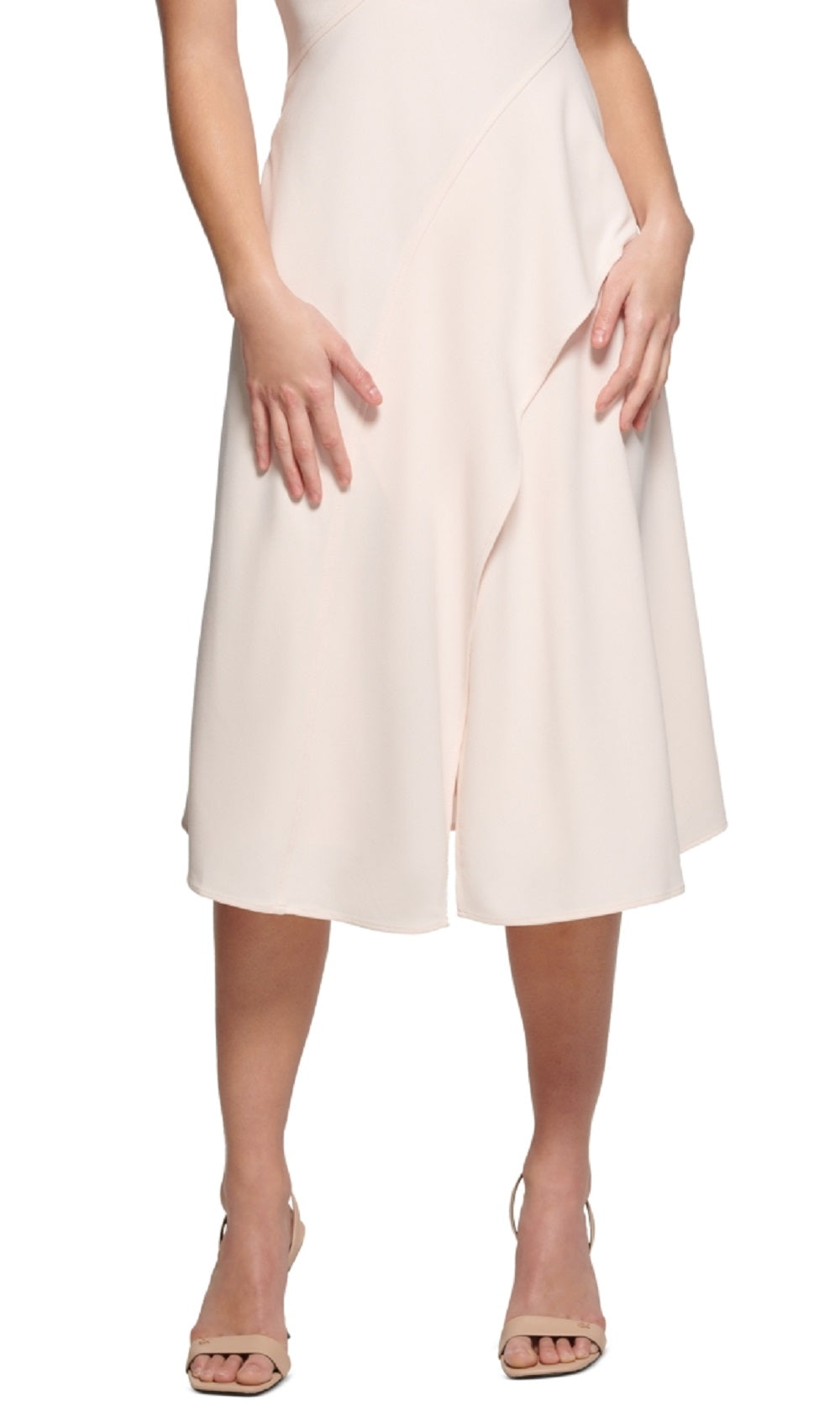 Calvin Klein's sleek scuba crepe dress features a chic asymmetric design at the skirt that plays up the A-line silhouette.| Approx. 43 long from center back neck to hem. Length is based on size 6 and varies 1/4 between sizes| Fitted through the chest and waist; structured A-line skirt sits slightly over hips| Scuba crepe; Stretchy and supportive| High neckline; A-line silhouette| Back zipper closure| Asymmetric detail at skirt