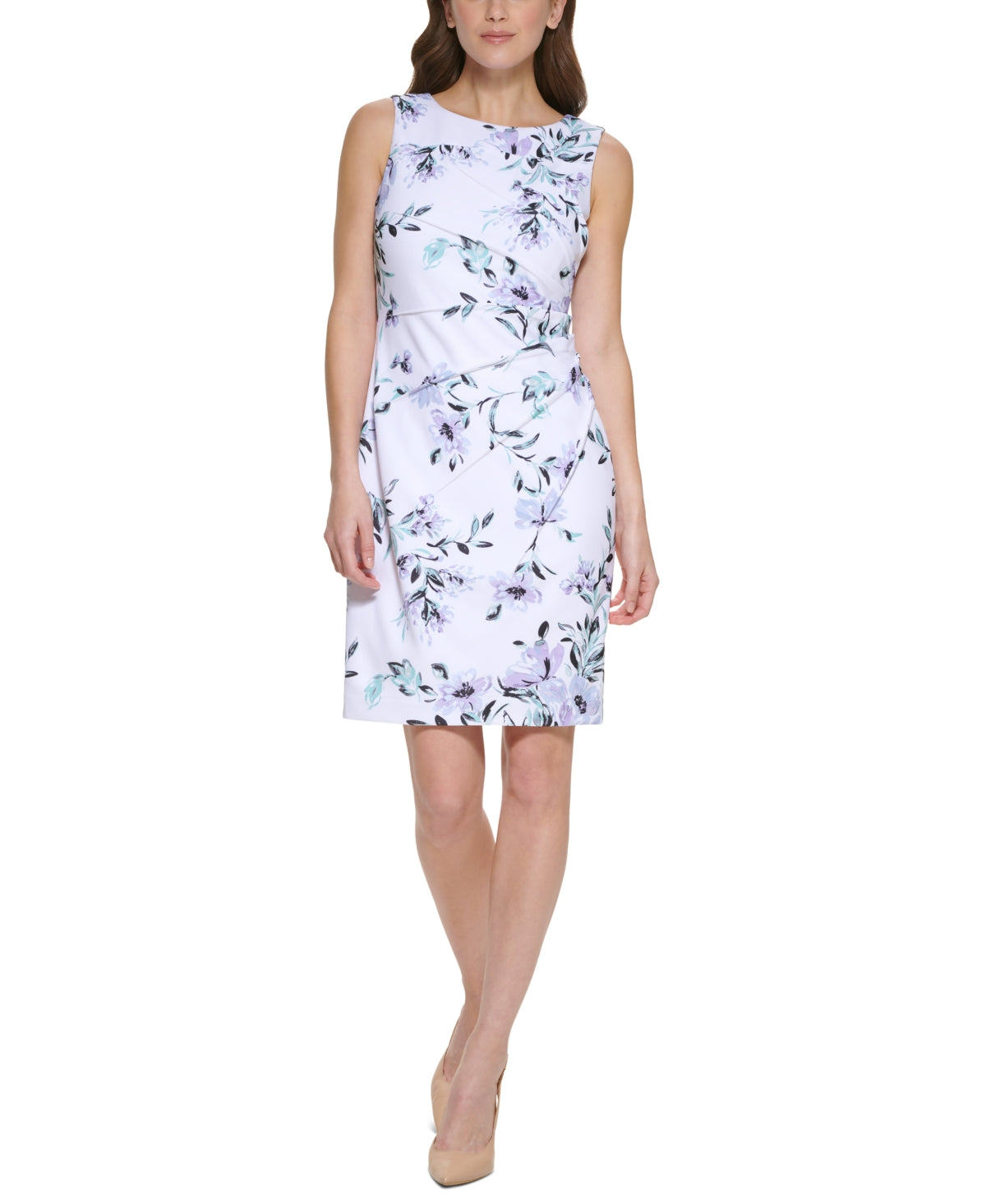 Calvin Klein Women's Floral Print Above Knee Sheath Dress White Size 4Petite