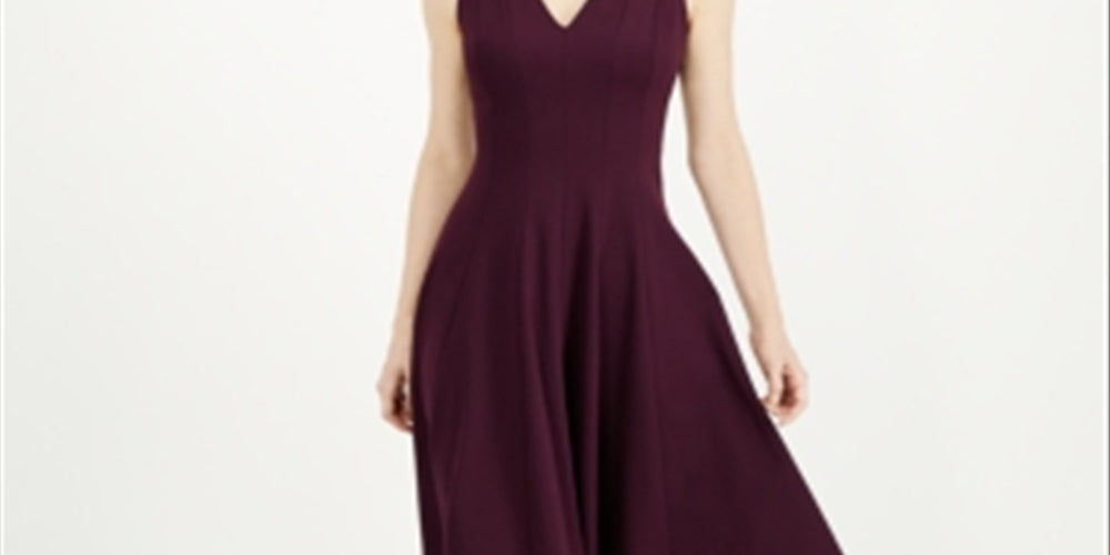 Elegant seadetails add sophisticated style to this fit-and-flare midi dress from Calvin Klein.| Approx. 42-3/4 long from center back neck to hem. Length is based on size 6 and varies 1/4 between sizes| Runs true to size; order your normal size| Fitted through the chest and waist; flared and flowing skirt| Scuba crepe; Stretchy and supportive| V-neck; Fit & flare silhouette| Back zipper closure