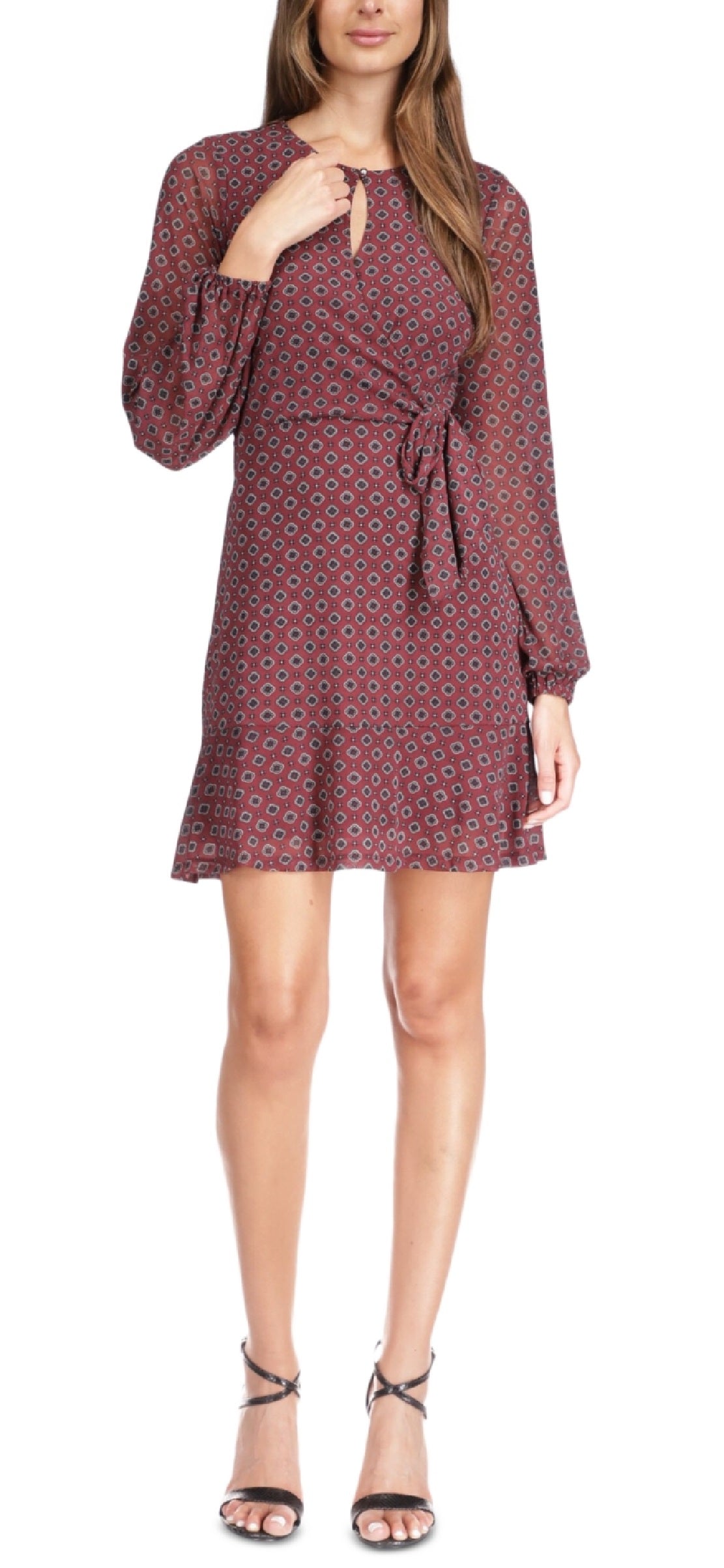 A ruffled hem is a kicky finish for this Michael Kors mini dress| a faux-wrap silhouette in a stylish foulard print