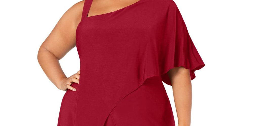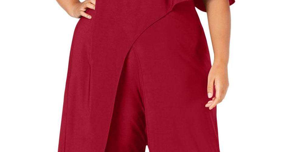 R M Richards Women's Bell Sleeve Asymmetrical Neckline Evening Wide Leg Jumpsuit Red Size 20W