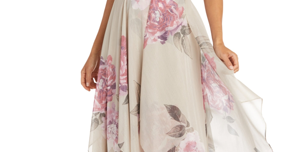 R & M Richards Women's Petite Keyhole Halter Gown Brown Size 6Petite