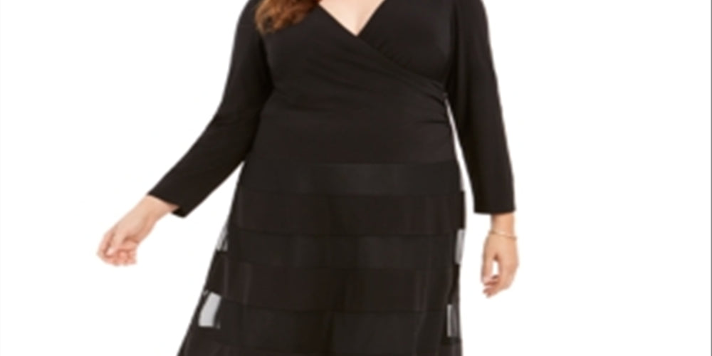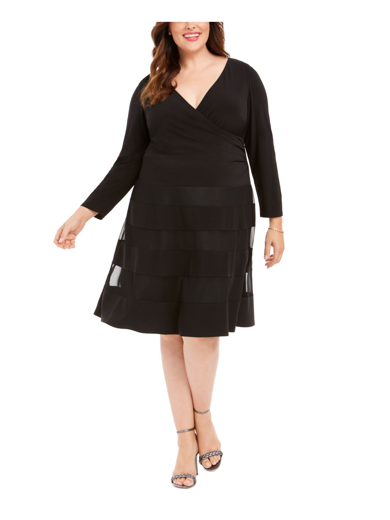 R&M Richards Women's V Neck Illusion Cocktail And Party Dress Black Size 20W