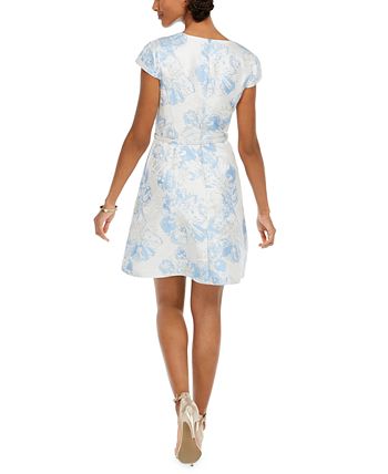 A removable belt defines the waistline of this sky-inspired jacquard dress from Vince Camuto.| Approx. 37 long from center back neck to hem. Length is based on size 6 and varies 1/4 between sizes| V-neck; Fit & flare silhouette| Hidden back zipper closure| Allover jacquard finish; removable belt| Shell; polyester/spandex; lining; polyester