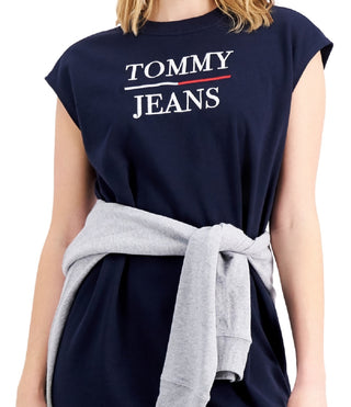 Tommy Jeans Women's Cap Sleeve Crew Neck Short Sweater Dress Blue Size X-Large