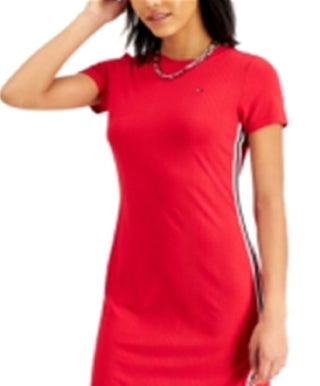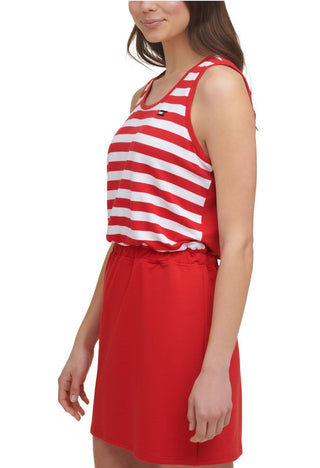 Tommy Hilfiger Women's Stretch Striped Sleeveless Scoop Neck Mini Sheath Dress Red Size Small