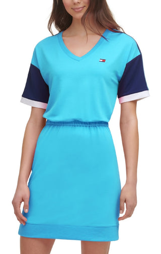 Tommy Hilfiger Women's Logo Graphic Short Sleeve Short Shirt Dress Blue Size 2X