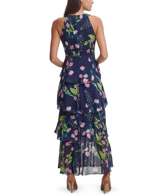 Tommy Hilfiger Women's Chiffon Tiered Halter Maxi Dress Blue Size 6