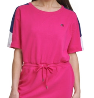 Tommy Hilfiger Women's Drawstring Waist T-Shirt Dress Pink Size Medium