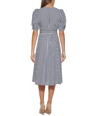Tommy Hilfiger Women's Gingham Midi Dress Blue Size 16