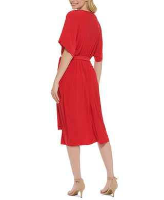 Tommy Hilfiger Women's V Neck Tie Waist Midi Dress Red Size 12