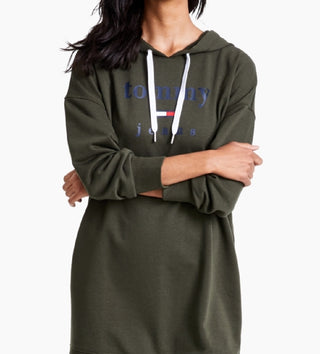Tommy Jeans Women's Logo Hoodie Dress Green Size Medium