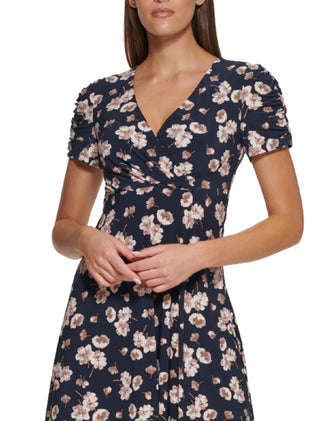 Tommy Hilfiger Women's Shirred Sleeve Surplice Dress Blue Size 4Petite