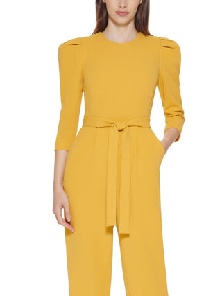 Calvin Klein Women's Belted Puff Shoulder Jumpsuit Yellow Size 8