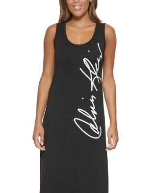 Calvin Klein Women's Sleeveless Logo Tank Dress Black Size Small
