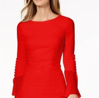 Calvin Klein Women's Chiffon Bell Sleeve Sheath Dress Red Size 16