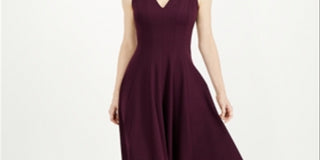 Calvin Klein Women's SeaV Neck Fit & Flare Dress Purple Size 12