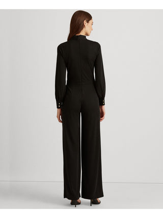 Ralph Lauren Women's Zippered Pocketed Long Sleeve Tie Neck Party Wide Leg Jumpsuit Black Size 2