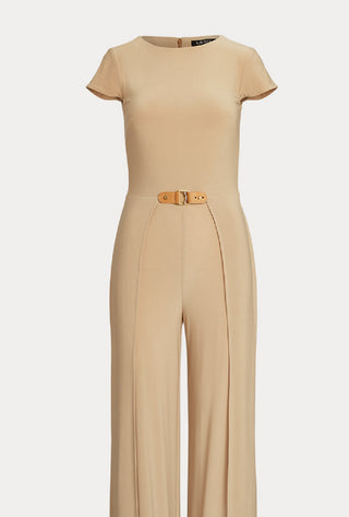 Ralph Lauren Women's Buckle Trim Jersey Jumpsuit Brown Size 16