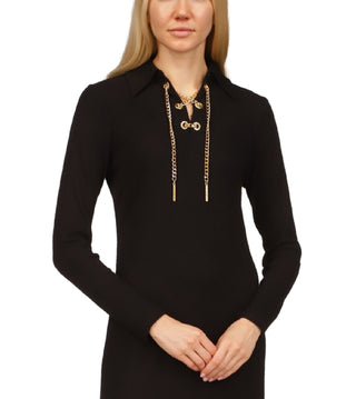 Michael Kors Women's Chain Lace Up Shift Dress Black Size Small