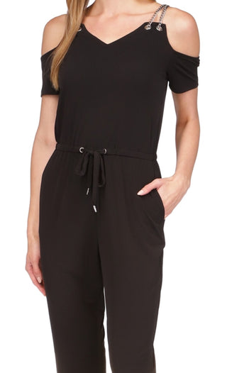 Michael Kors Women's Chain Cold Shoulder Jumpsuit Black Size X-Small