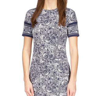 Michael Kors Women's Paisley Print Border Trim Dress Blue Size Medium
