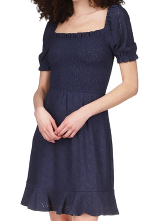 Michael Kors Women's Eyelet Smocked Peasant Dress Blue Size Medium