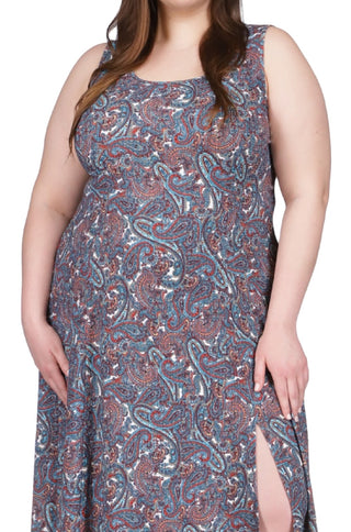 Michael Kors Women's Paisley Scoop Maxi Tank Dress Blue Size 3X