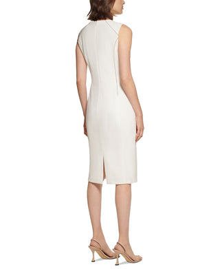 Calvin Klein Women's Scuba Crepe Embellished Sheath White Size 4