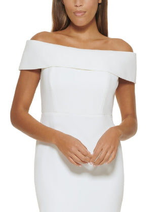 Calvin Klein Women's Off The Shoulder Sheath Dress White Size 6
