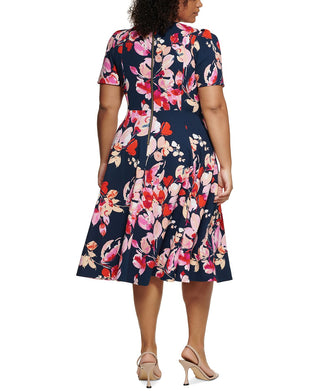 Calvin Klein Women's Plus Floral Print Calf Midi Dress Blue Size 18W