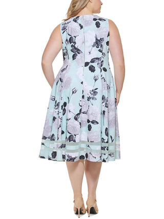 Calvin Klein Women's Floral Print Illusion Hem Dress Blue Size 20W