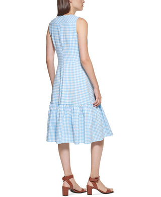 Calvin Klein Women's Knot Front Gingham Midi Dress Blue Size 8