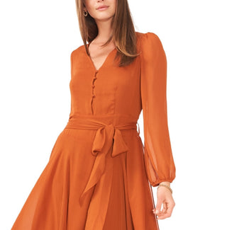 Vince Camuto Women's Long Sleeve Handkerchief Hem Maxi Dress Orange Size Large