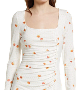 Free People Women's Celia Floral Square Neck Long Sleeve Dress White Size X-Small