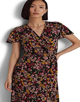Ralph Lauren Women's Floral Jersey Wrap Dress Black Size X-Large