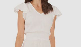 Vince Camuto Women's Gauzy Smocked Waist Ruffled Dress White Size Medium