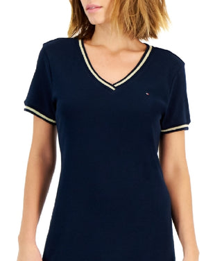 Tommy Hilfiger Women's Cotton V Neck Short Sleeve Dress Blue Size XX-Large