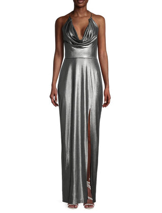 Aidan By Aidan Mattox Women's Draped Foil Halter Gown Gray Size 6