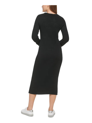 Calvin Klein Jeans Women's Ribbed Long Sleeve Crewneck Side Slit Dress Black Size Small